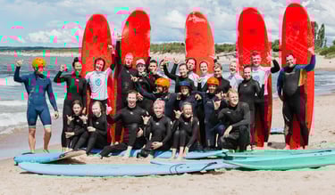 Pakviesti iš įvairiausių Lietuvos miestų ir pasiruošę naujoms patirtims, dalyviai atvyko į Surfcamp stovyklą, esančią Klaipėdoje. Čia jų laukė susipažinimo vakaras, saulės palydėjimas kopose ir tikslų išsikėlimas ateinančioms dienoms. Dalyviai dalijosi, kad su nekantrumu laukia užsiėmimo ant banglenčių, tikisi gerai praleisti laiką ir pailsėti.
